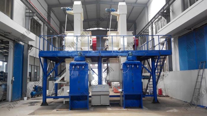 雙配套生產(chǎn)線是在節(jié)能型生產(chǎn)線的基礎(chǔ)上經(jīng)過改進(jìn)而成,兩套生產(chǎn)線共用一套完整的鋼架平臺(tái),結(jié)構(gòu)更加緊湊,兩套生產(chǎn)線獨(dú)立控制,互不影響,成倍提高產(chǎn)量的同時(shí),節(jié)省資金投入。 總裝機(jī)功率80KW左右,設(shè)備占地面積50㎡,設(shè)備總高6米,廠房要求6.5m以上,生產(chǎn)所需工人4-6人,日產(chǎn)…