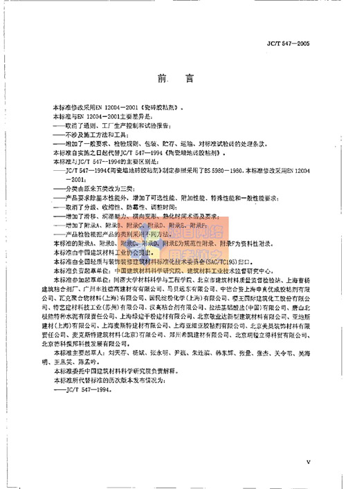《陶瓷墻地磚膠粘劑》行業(yè)標(biāo)準(zhǔn)